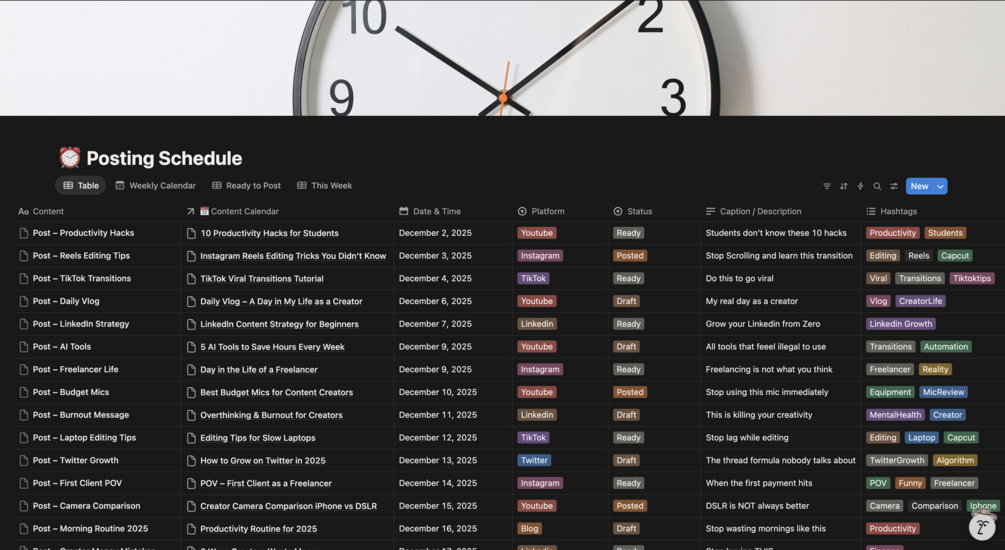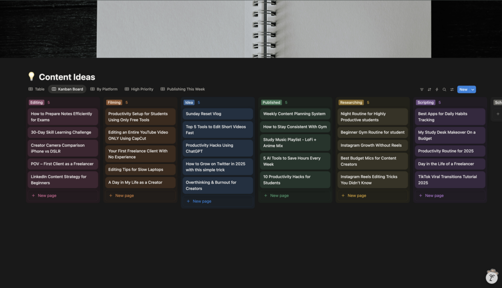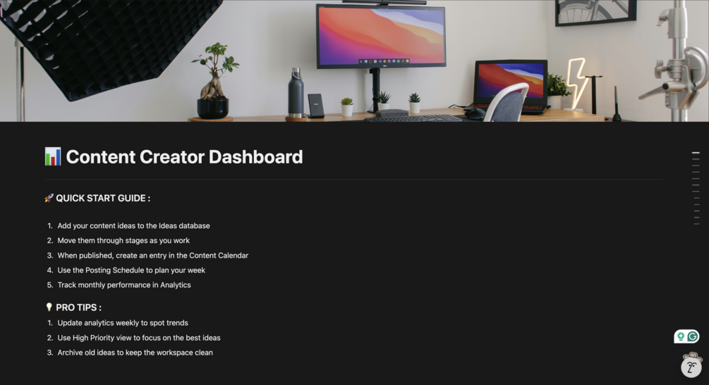 Content Creator Dashboard – Notion Template