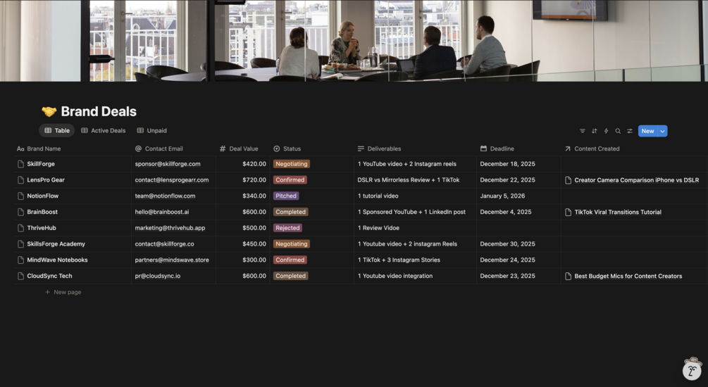 - Never miss a brand deal deadline